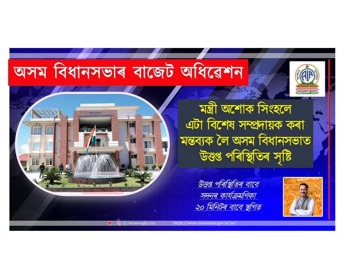 এটা বিশেষ সম্প্রদায়ক লৈ অশোক সিংহলে দিয়া মন্তব্যক লৈ আজি অসম বিধানসভাত উত্তপ্ত পৰিস্থিতিৰ সৃষ্টি