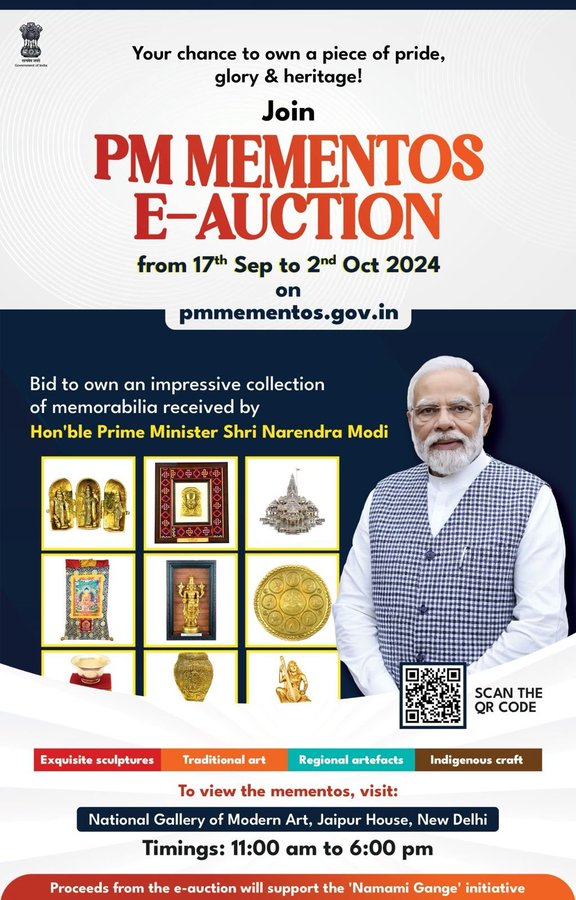 प्रधानमंत्री नरेन्द्र मोदी को मिले उपहारों की ई-नीलामी मंगलवार से शुरू होगी