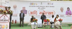 जयपुर रा जवाहर कला केंद्र मांय शुक्रवार ने आदि महोत्सव सरू व्ह्यो। राज्यपाल हरिभाउ बागडे़ 10 दिन चालण वाळा ईं महोत्सव रो उद्घाटन कीनो। ईं मौके वे आदिवासी रीति-रिवाज़ ने बचावण माथे ज़ोर दीनो। राज्यपाल कह्यो के आदिवासियां रा कुदरत रा पोषण ऊं जुड्या रीति-रिवाज़ ने समाज कानी ऊं अपनावण री ज़रूरत है। वे जनजातियां रा लोगां रा पूरा विकास सारू वां ऊं जुड़्या हलकां री जरूरतां रो ध्यान राखता थकां वां ने काम-कमाई रा बत्ता ऊं बत्ता मौका मुहैया करावण री जरूरत बताई। आदिवासी नायक बिरसा मुण्डा ने याद करता थकां राज्यपाल कह्यो के वे आदिवासियां रा हक सारू लम्बी लड़ाई लड़ी। कार्यक्रम मांय जनजाति क्षेत्रीय विकास मंत्री बाबू लाल खराड़ी अर जयपुर ग्रेटर री महापौर डॉ. सौम्या गुर्जर ई मौजूद रह्या। ध्यानजोग है के जनजातीय कार्य मंत्रालय रा ट्राइफेड री ओर ऊं राख्यी ज्या ईं महोत्सव रो मकसद जनजातीय कारीगरां ने मंच मुहैया करा र वां री कला अर संस्कृति ने बचावणो है। महोत्सव मांय करीब 120 स्टॉल लगायी ज्यी है, ज्यां मांय राजस्थान, हिमाचल प्रदेश, पश्चिम बंगाल, मध्यप्रदेश, गुजरात, छत्तीसगढ़, उत्तराखंड अर पूर्वोत्तर राज्यां रा 200 ऊं बत्ता जनजातीय कारीगरां कानी ऊं बणायी ज्या भांत-भांत रा सामान रो दरसाव करी ज्यो है। महोत्सव मांय रोजीना सिंज्यां री पोर जनजातीय सांस्कृतिक कार्यक्रम राख्या जावेला।