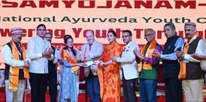 जयपुर रा राष्ट्रीय आयुर्वेद संस्थान मांय व्ह्या संयोजनम् 2024 रो दीतवार ने समापन व्हे ग्यो। कार्यक्रम मांय उपमुख्यमंत्री दिया कुमारी भेळी व्ही। संयोजनम 2024 रे तीजे दिन आयुर्वेद चिकित्सक, शिक्षक अर पढेसरां चरक संहिता रा श्लोकां रो भेळो पाठ करयो। ई आयोजन मांय देशभर रा अढाई हजार ऊं बत्ती आयुर्वेद ऊं जुड्या शिक्षक, पढेसर अर शोध करणियां भेळा व्ह्या। समापन जळसा मांय बोलता उपमुख्यमंत्री दिया कुमारी राजस्थान मांय अंतर्राष्ट्रीय थर रो आयुर्वेद सेंटर खोलण रो ऐलाण करयो। वणा कयो के इण ने खोलण सारू तैयारी करी जावे। उपमुख्यमंत्री दिया कुमारी जळसा मांय आयुर्वेद रा हलका मांय ठावा काम करण वाळा देश रा न्यारा न्यारा राज्यां रा आयुर्वेद विद्वानां, चिकित्सकां रो सन्मान ई करयो।