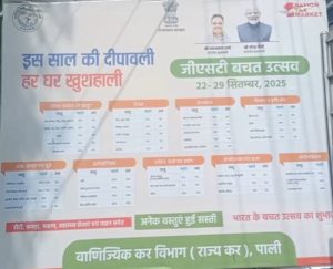 प्रधानमंत्री नरेंद्र मोदी जीएसटी बचत उत्सव री घोषणा करी ही। 22 सितम्बर सूं सरू व्हीयो ओ उत्सव समाज रा सगळा तबकां ने फायदो दे रह्यो है। जीएसटी सुधार भारत री अप्रत्यक्ष कर प्रणाली ने सरल बणाणे री दिशा मांय एक खास कदम है। आं सुधारां सूं चीजां अर सेवावां माथे टैक्स कम व्हीयो है अर लोग इण रो फायदो ले रिया है। इण री इण कडी मांय प्रदेश मांय न्यारा न्यारा ठोडां जीएसटी बचत उत्सव रे मार्फत जनता ने जागरूक करयो जा रह्यो है। थावर ने पाली मांय वाणिज्य कर महकमा री कानी सूं जागरूकता कार्यक्रम राख्या गया। इण रे चालता चौराहां माथे पोस्टर बैनर लगाया गया अर रैली निकाळी ज्यी। वठी ने सवाईमाधोपुर मांय केंद्रीय संचार ब्यूरो, क्षेत्रीय कार्यालय कानी सूं डूंगरी मांय खास स्वच्छता ही सेवा अर जीएसटी सुधार बचत उत्सव माथे खास जागरूकता कार्यक्रम राख्या गया। इण कार्यक्रम मांय स्वच्छता ही सेवा अभियान, केंद्र सरकार री न्यारी न्यारी जनकल्याणकारी योजनावां माथे चर्चा करता थकां जीएसटी बचत उत्सव रा बारा मांय विस्तार सूं जाणकारी दी। कार्यक्रम री सरूआत मांय स्कूली टाबर स्वच्छता रो संदेश देता व्हीया रैली भी निकाळी। इण मौके माथे स्थानीय जनप्रतिनिधि अर न्यारा न्यारा महकमा रा अहलकार, कर्मचारियां रे साथे स्थानीय लोग भी मौजूद रिया। जैसलमेर मांय जीएसटी बचत उत्सव अभियान रे तैत शहर रा व्यापारियां अर उपभोक्तावां ने जीएसटी सुधारां रा बारा मांय जाणकारी दी जा रही है। उच्छव मांय जनप्रतिनिधि अर अहलकार भी आप आप री सहभागिता निभा रिया है। सिरोही मांय जीएसटी बचत उत्सव रे तैत जनजागरण अभियान चलायो जा रियो है।
