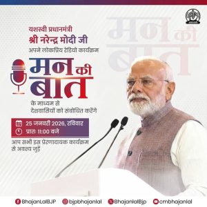 प्रधानमंत्री नरेन्द्र मोदी काल संवारे 11 बज्यां आकाशवाणी ऊं प्रसारित कर्या जावण वाळा खास कार्यक्रम मन की बात मांय विचार बतावेला। आ ईं कार्यक्रम री 130वीं कड़ी व्हेला। ओ कार्यक्रम आकाशवाणी अर दूरदर्शन रा पूरा नेटवर्क, आकाशवाणी समाचार वेबसाइट अर न्यूज़ ऑन ए.आई.आर मोबाइल ऐप माथे प्रसारित कर्यो जावेला। ईं सागे ई आकाशवाणी समाचार, डीडी न्यूज़, प्रधानमंत्री रा दफ़्तर अर सूचना अर प्रसारण मंत्रालय रा यू-ट्यूब चैनलां माथे ई ईं कार्यक्रम रो प्रसारण कर्यो जावेला।