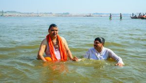 मुख्यमंत्री भजनलाल शर्मा थावर ने प्रयागराज महाकुंभ मांय संगम री ठौड़ पवित्र स्नान कीनो। श्री शर्मा थावर ने संवारे मंत्री मण्डल अर भारतीय जनता पार्टी रा विधायकां सागे प्रयागराज पूग्या। वे गंगा, जमुना अर सरस्वती नदियां री तौर-तरीका ऊं पूजा-अर्चना कर र प्रदेश री जनता रा सुख, समृद्धि अर कल्याण री प्रार्थना कीनी। श्री शर्मा राजस्थान मण्डपम् मांय मंत्रीपरिषद री मीटिंग लीनी। खबरनवीसां सागे बातचीत करता थकां मुख्यमंत्री महाकुंभ ने आध्यात्मिकता अर इंसानियत रो महोत्सव बतायो। वे गंगा नदी ने जीवन देवण वाळी बतायी। महाकुंभ मांय हाल तांई 41 करोड़ ऊं बत्ता जातरु पवित्र स्नान कर लीनो है अर मोटी तादाद मांय जातरु पूग रह्या है। 13 जनवरी ऊं सरु व्ह्यो महाकुंभ 26 फरवरी तांई चालेला।