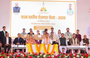 मुख्यमंत्री भजनलाल शर्मा कह्यो के की वां री सरकार नौजवानां ने रोजगार ऊँ जोड़ण सारू दृढ़ संकल्प लियो है अर ई हलकां मांय डबल इंजन सरकार कानी ऊँ बरोबर कोशिश करी जावे। मुख्यमंत्री गुरूवार ने जयपुर रा कॉमर्स कॉलेज मांय व्ह्या राज्य थर रा रूजगार महोत्सव मांय बोल रह्या हा। ई मौके वणा कह्यो के लारला दो सालां रे दौरान नौजवानां रा विकास रा बारा मांय फैसला अर योजनावां रे चालता सरकारी हलकां रे साथे निजू हलका मांय ई दो लाख ऊँ बत्ती रूजगार मिल्या है। ई मौके मुख्यमंत्री न्यारी-न्यारी कंपनियां मांय चुणी ज्या नौजवानां ने नियुक्ति पाना शुभकामनावां दी। वणा कार्यक्रम थळा माथे लगायी ज्यी कंपनियां री स्टॉलां ने देख्या। कार्यक्रम मांय उपमुख्यमंत्री दीया कुमारी अर विधायक राज्यवर्द्धन राठौड़ ई भेळा व्ह्या।